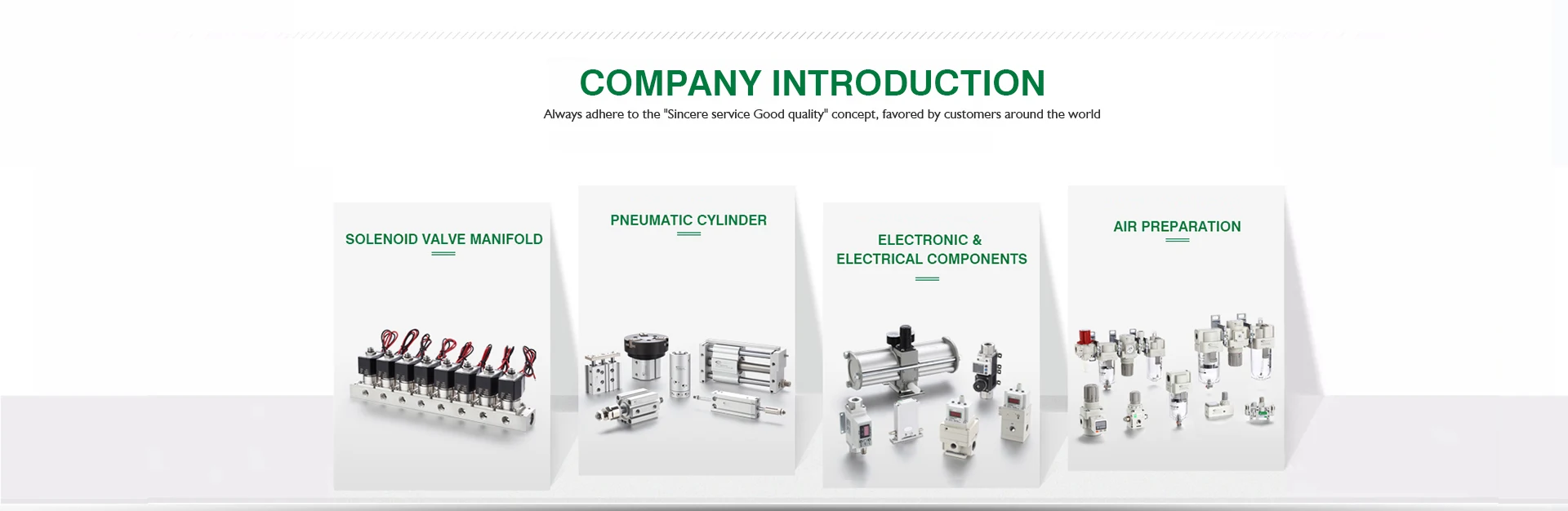 Sản Phẩm chính: Xi lanh khí nén, van điện từ, bộ lọc bôi trơn và điều chỉnh, lắp khí nén, ống khí